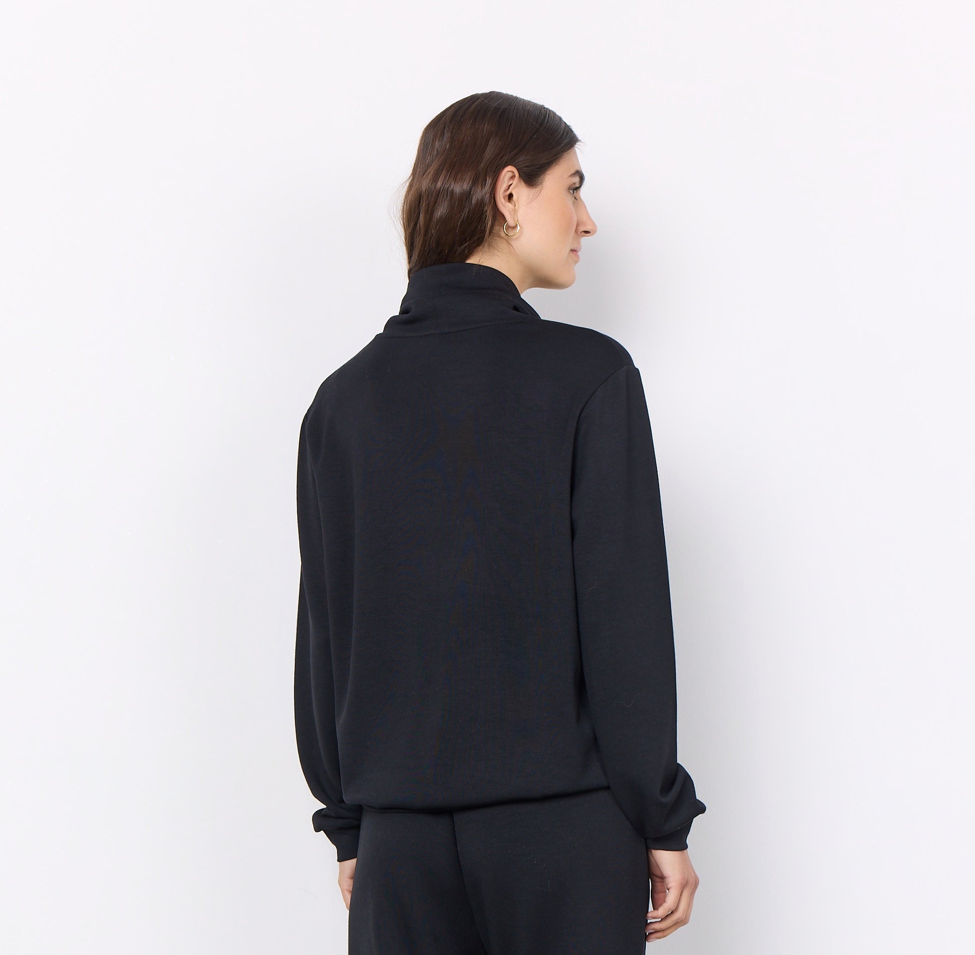 A comfortable sweatshirt made from a nice blend of 48% modal, 48% polyester and 4% elastane. The sweatshirt has a high neckline with ties and a loose fit. Style this lovely sweatshirt with a pair of matching sweatpants for a comfortable homewear look.