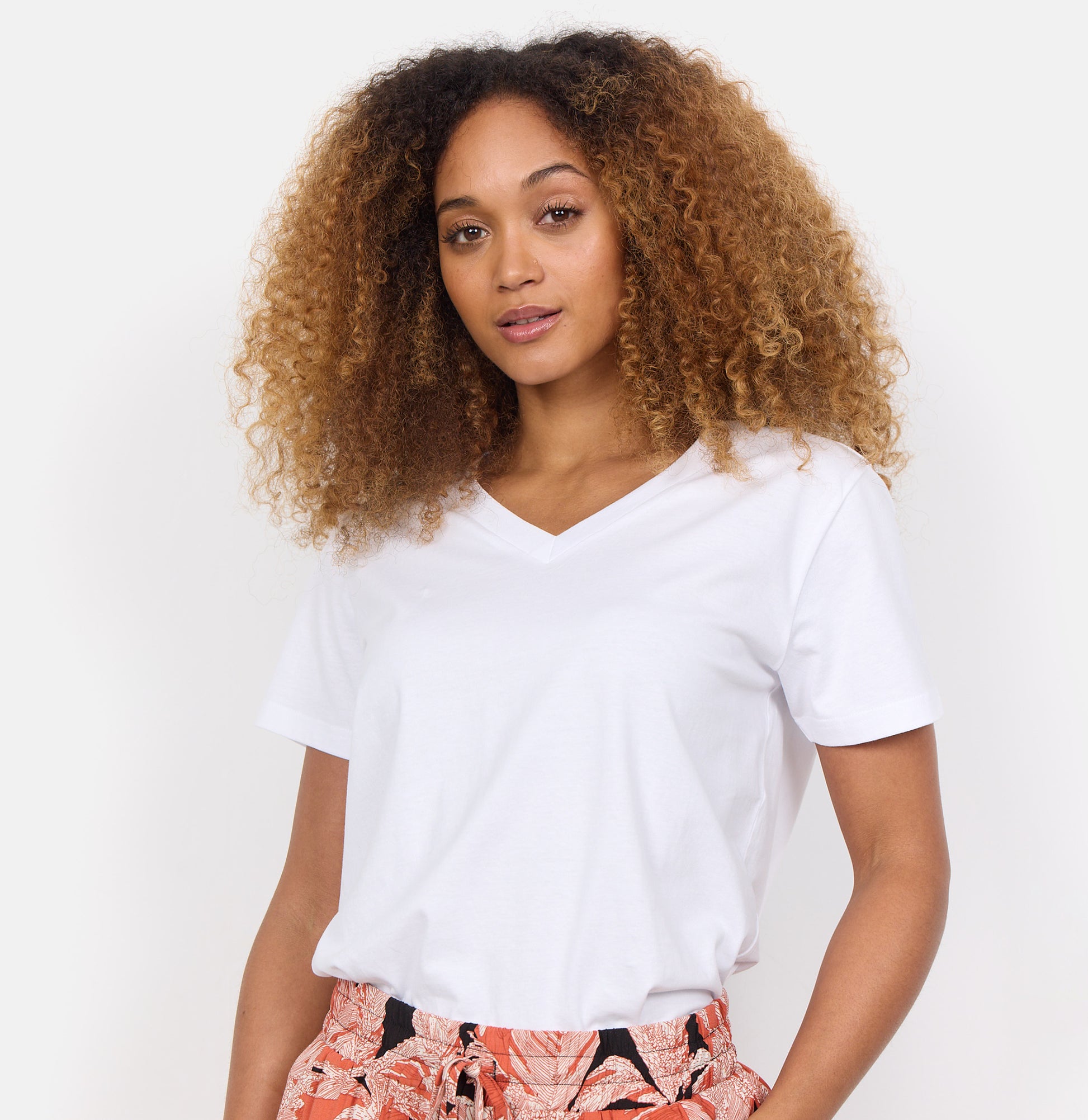 A basic and soft t-shirt in 100% organic cotton. The t-shirt has a classic fit and a deep v-neckline. This basic t-shirt can be styled with anything from your closet, perhaps your favourite jeans or skirt - it is a must have in every wardrobe.