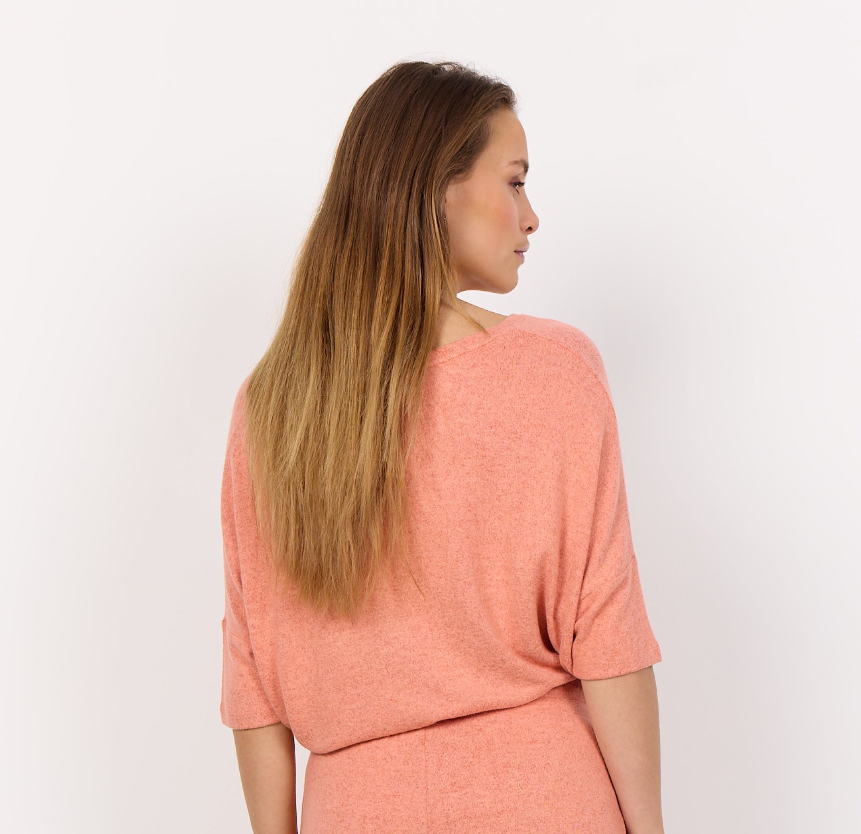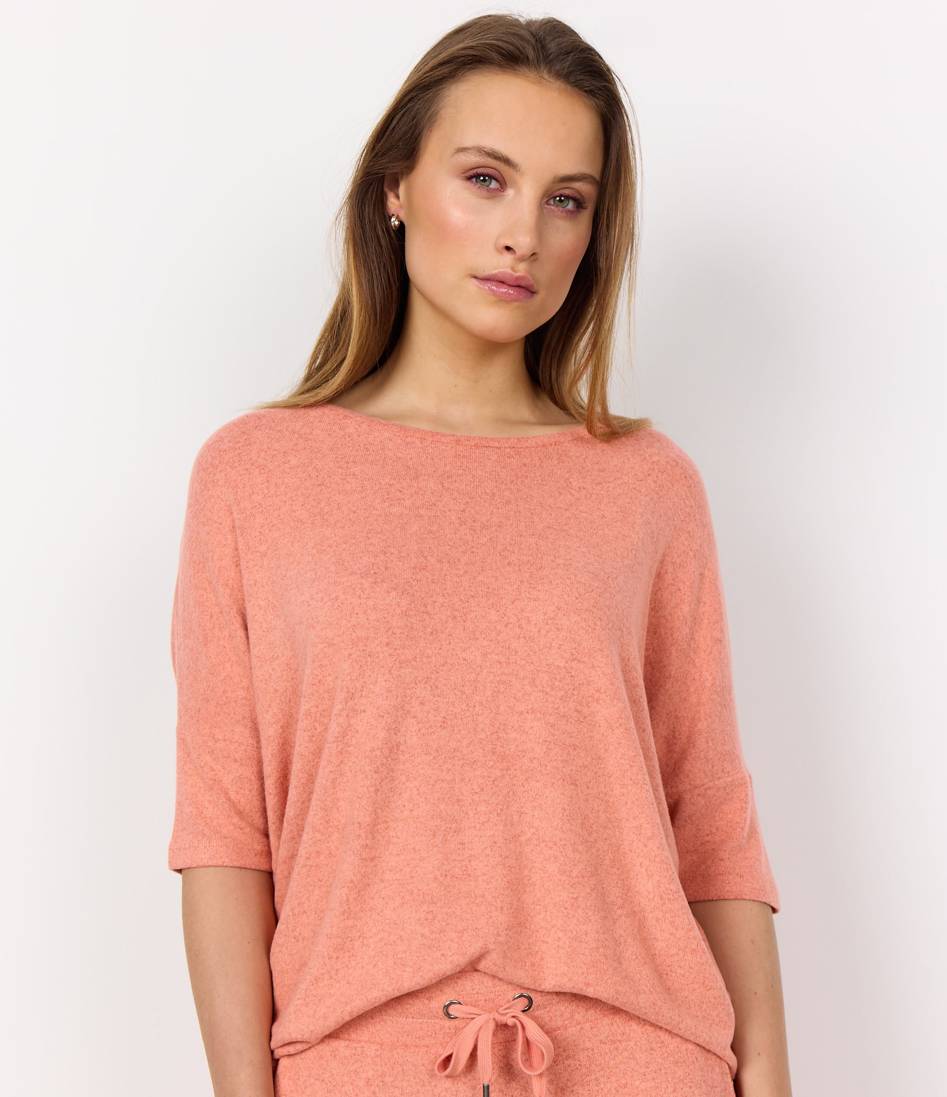 A basic blouse in a blend of 74% viscose, 21% polyester and 5% elasthane. This lovely blouse has a round neckline, 3/4 length sleeves and a loose fit. It is a must have item in any wardrobe, and can be styled with almost anything.