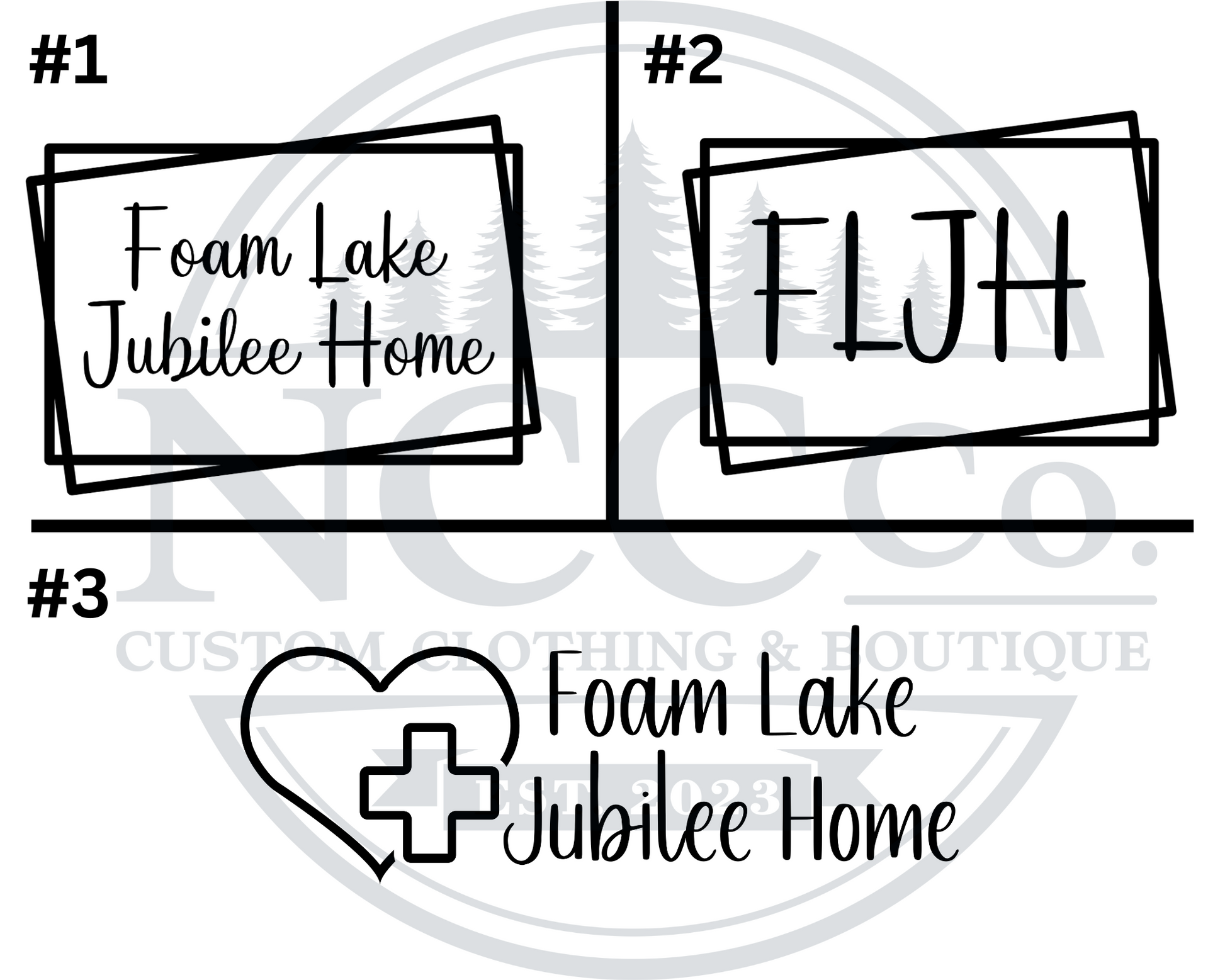 Please Note: black or white writing will be used depending on the colour of apparel chosen.