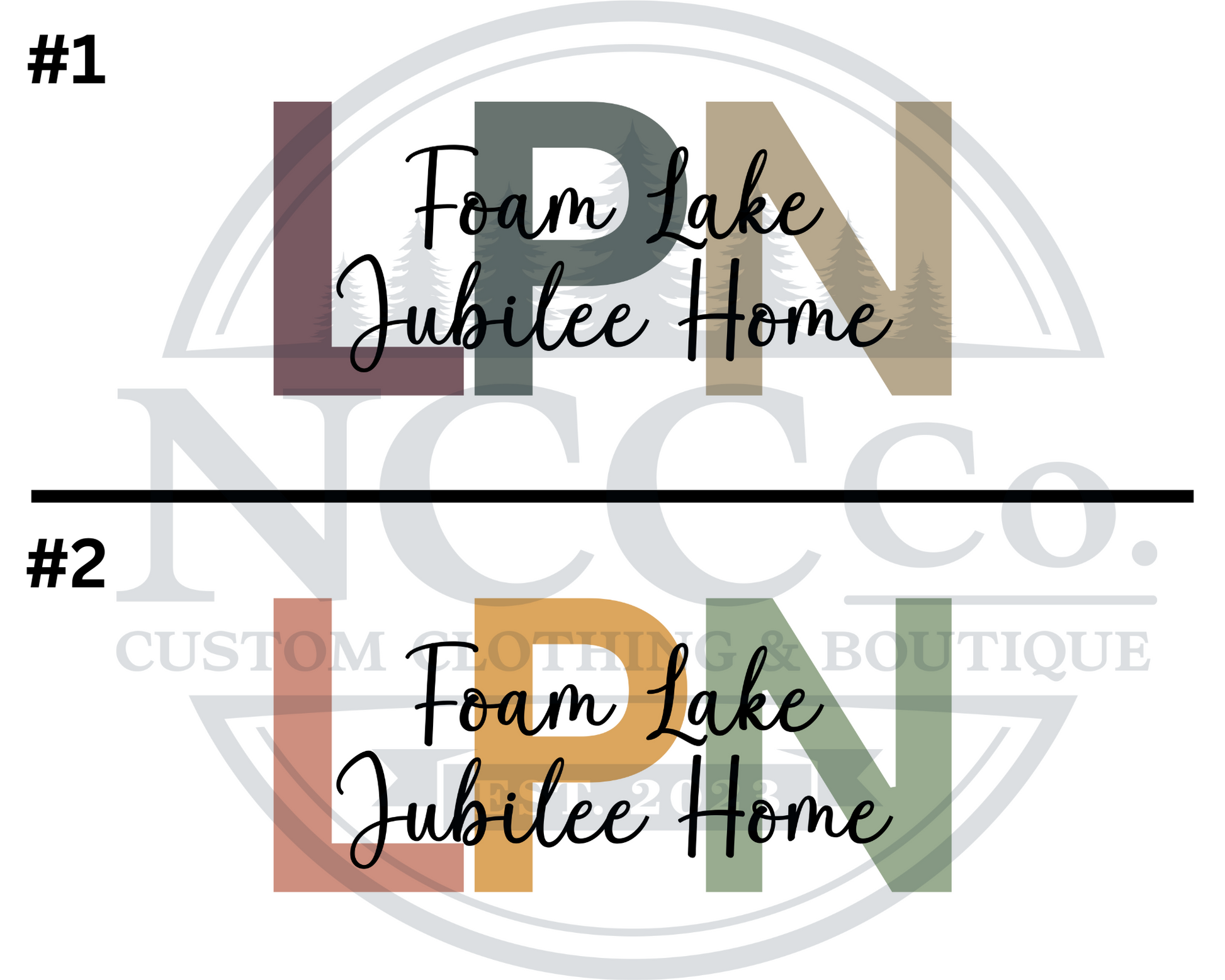 Please Note: black or white writing will be used depending on the colour of apparel chosen.