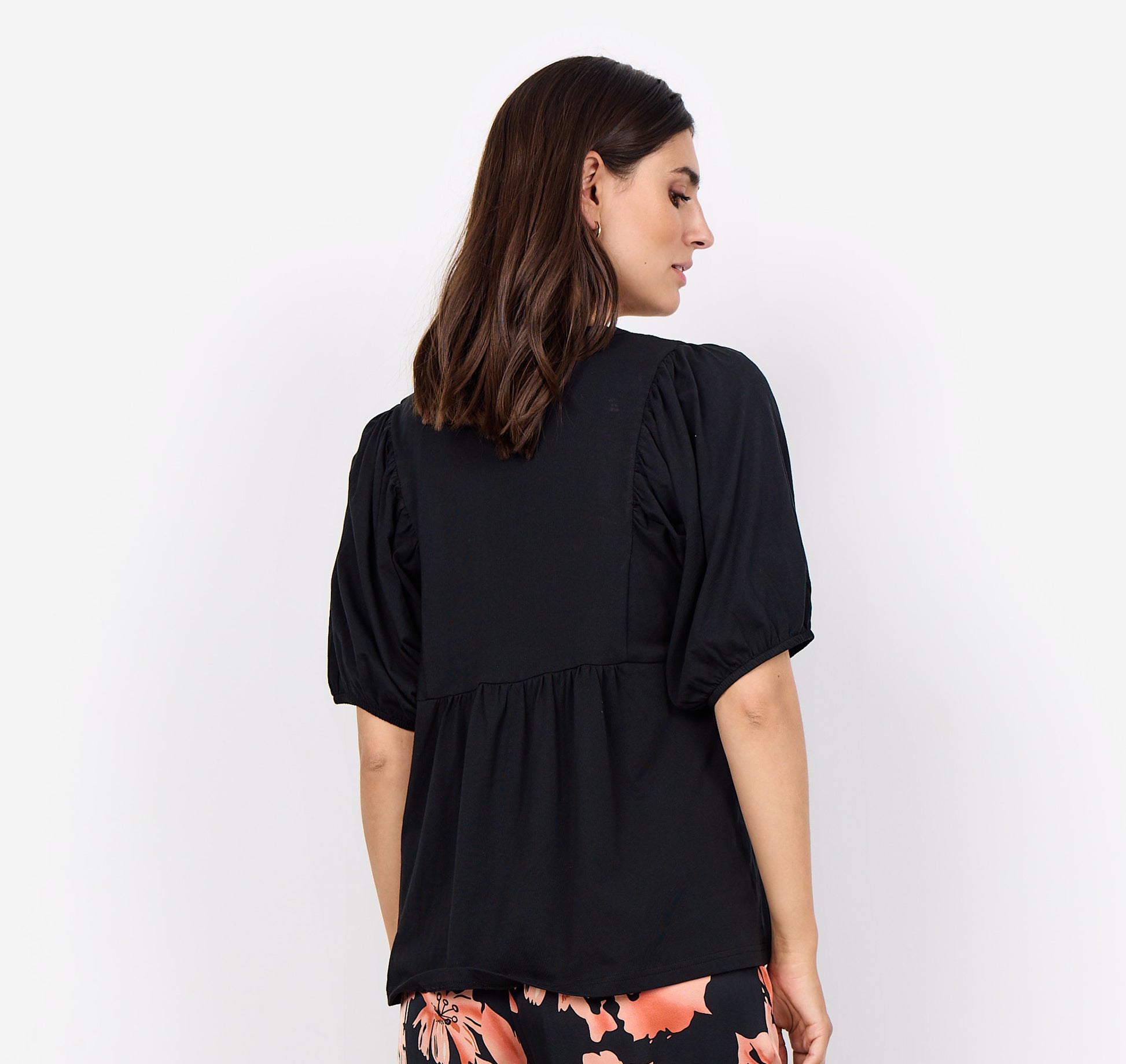 Crafted from 100% Organic cotton. This blouse features a delicate broderie anglaise patch on the front panel, a V-neckline, gathered waistline, and mid-length sleeves with a balloon effect. Ideal for over both pants and skirts, it ads a feminine flare to any outfit.