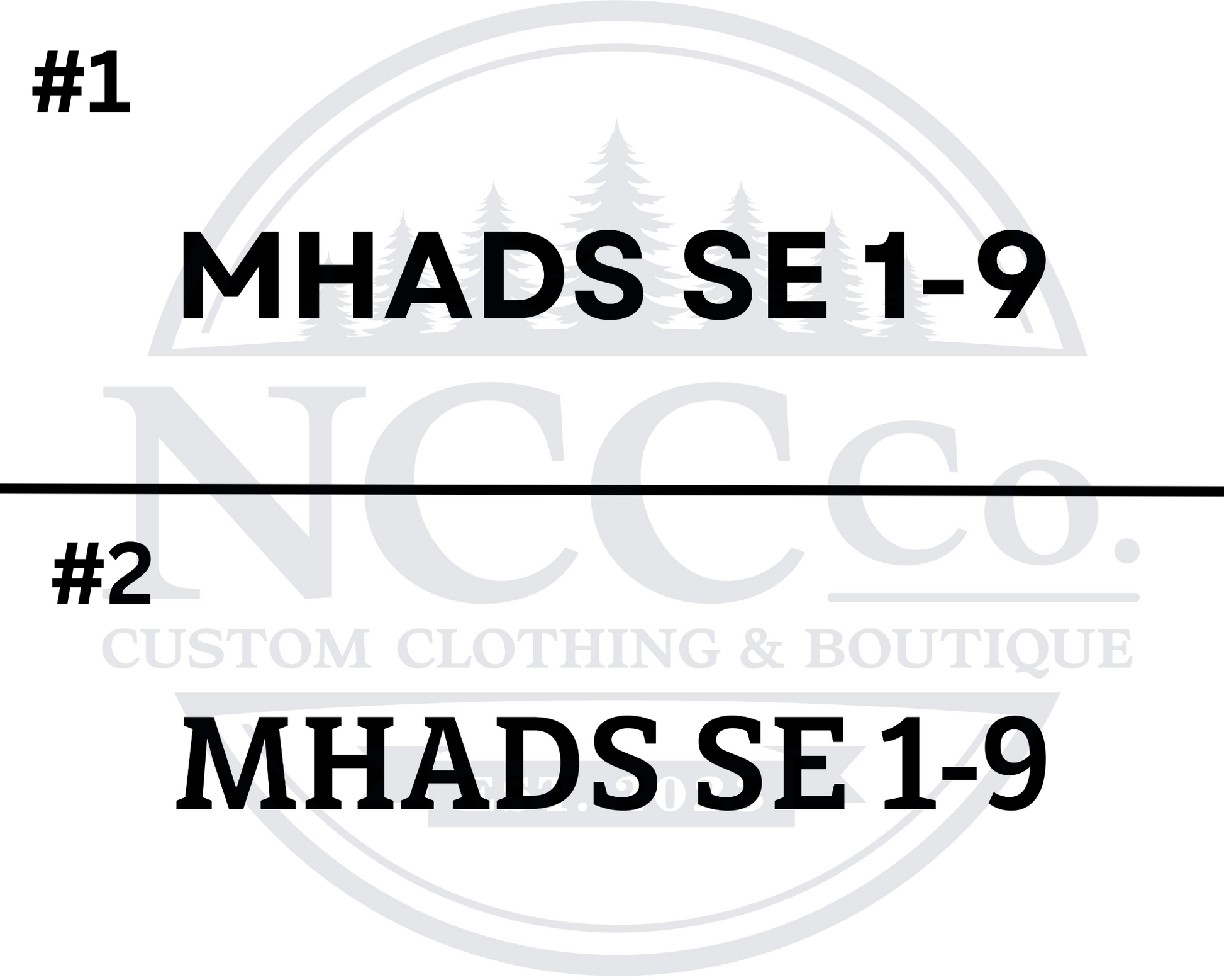 Please Note: black or white writing will be used depending on the colour of apparel chosen.