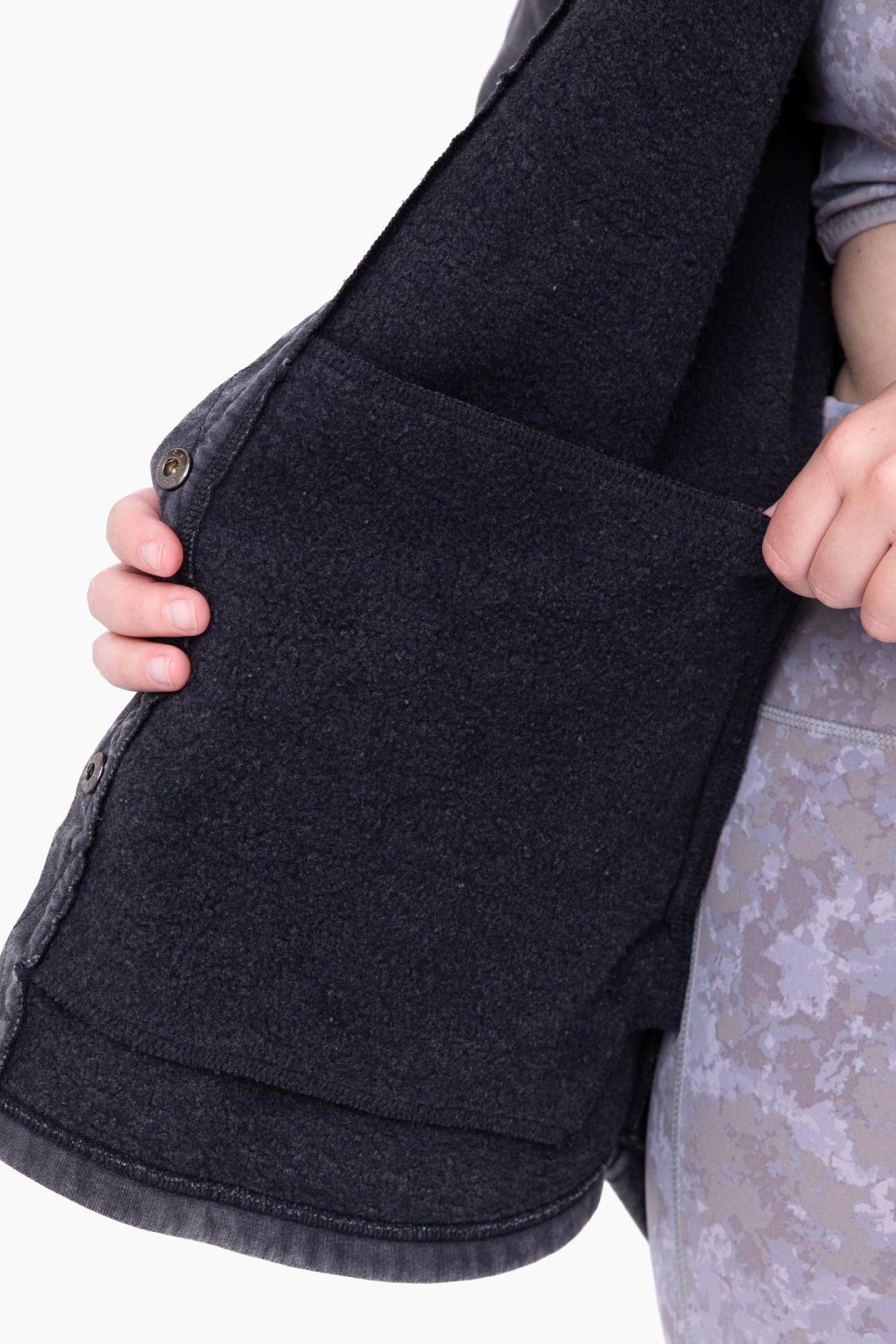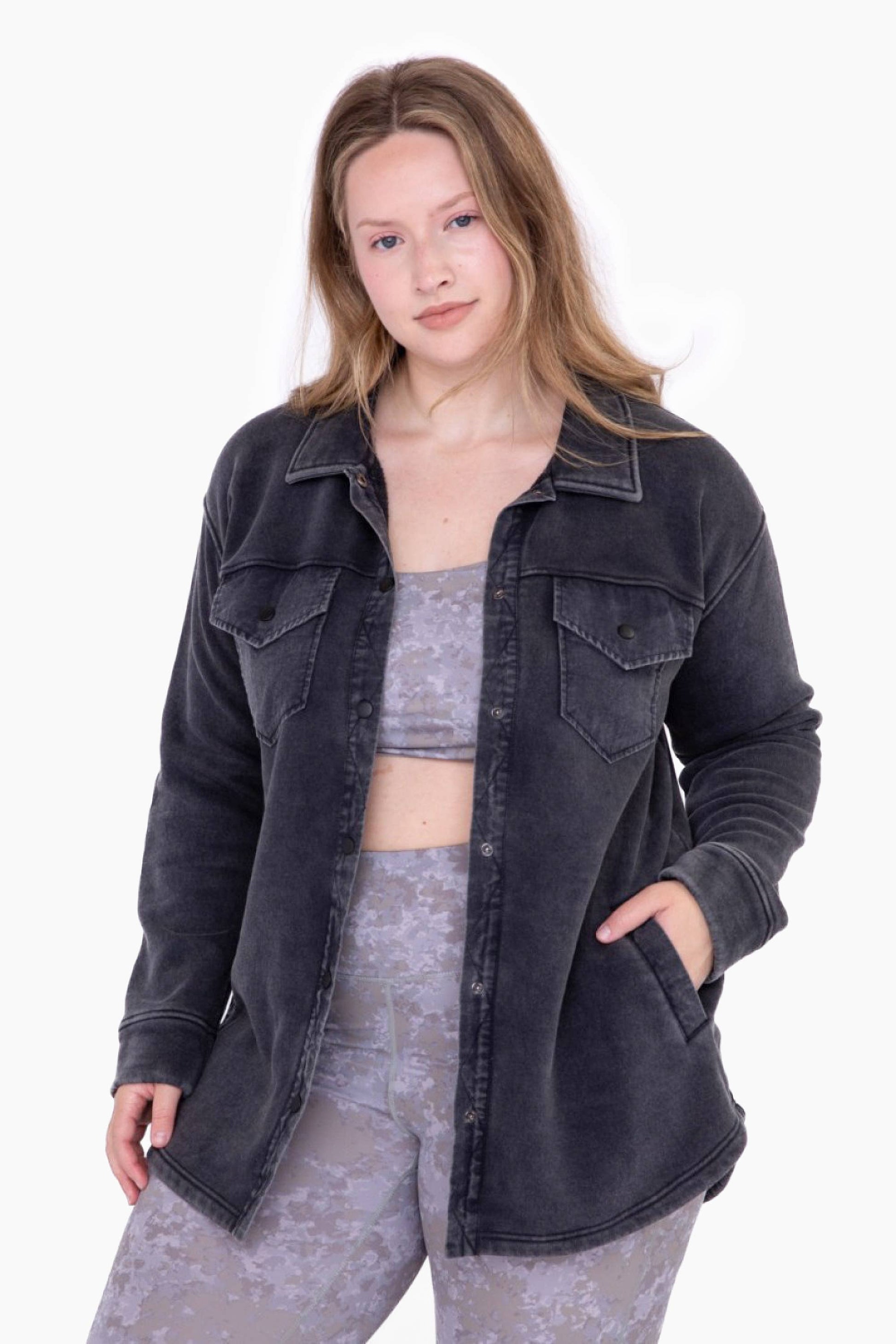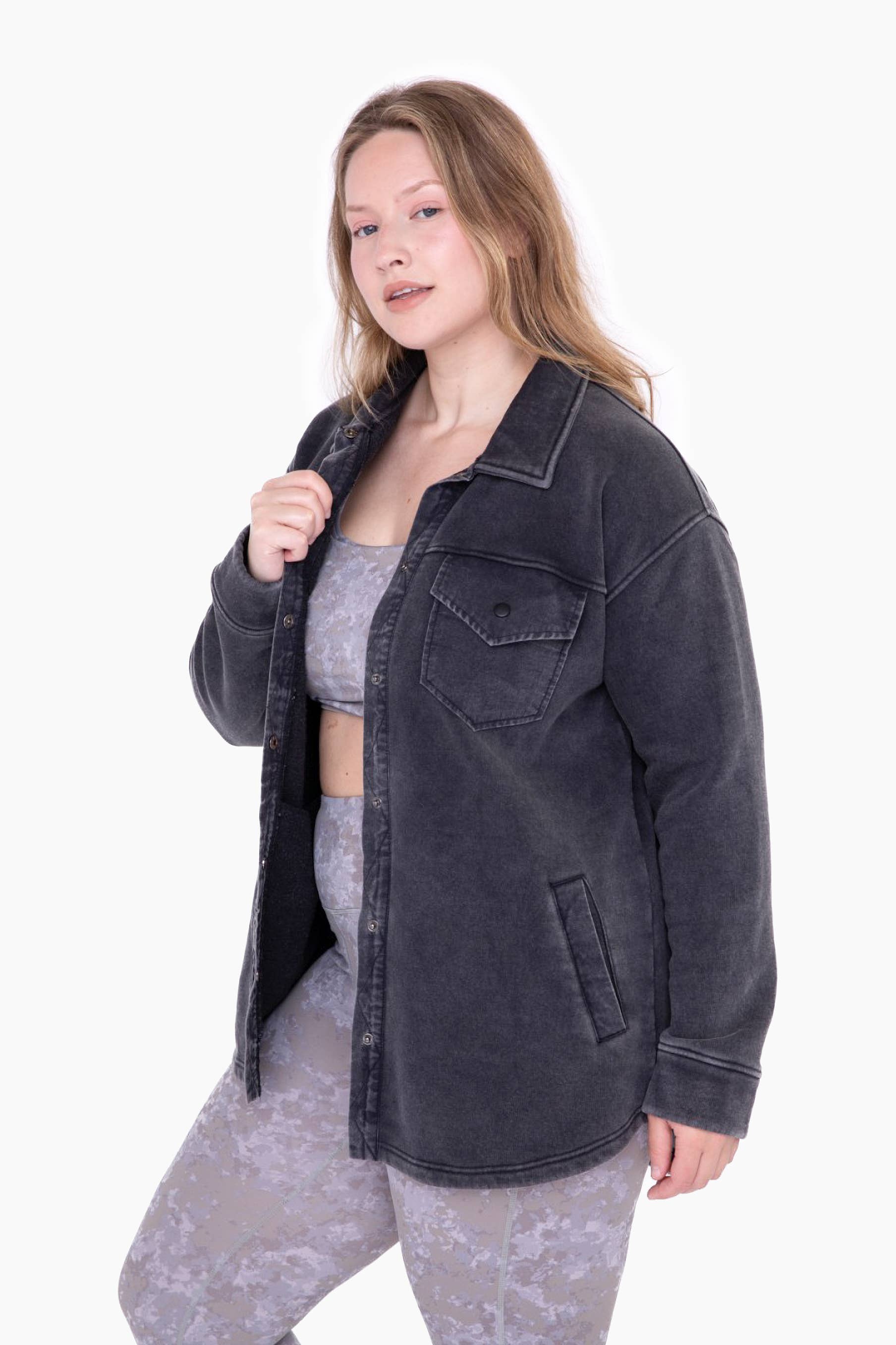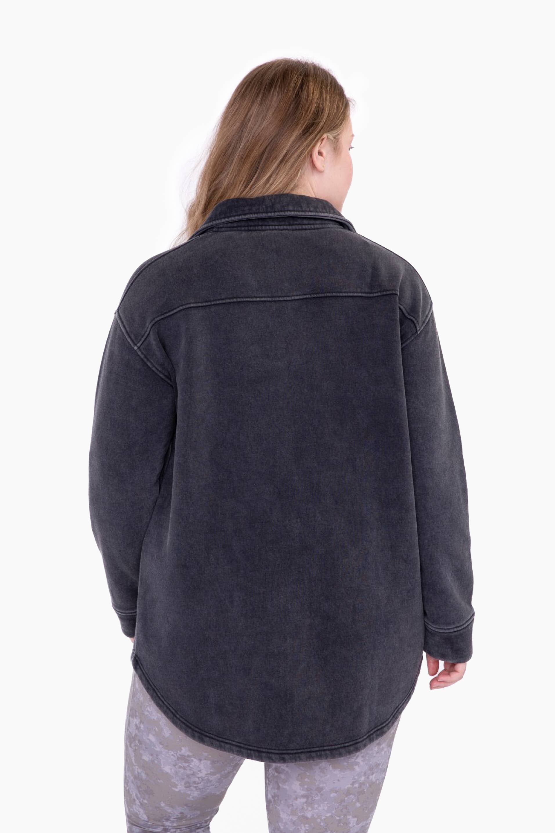 Oversized, cozy, and multipurpose, this shacket is sure to be a staple piece. The longline silhouette and snap buttons allow for a casual and relaxed fit while the brushed inside keeps you warm.
