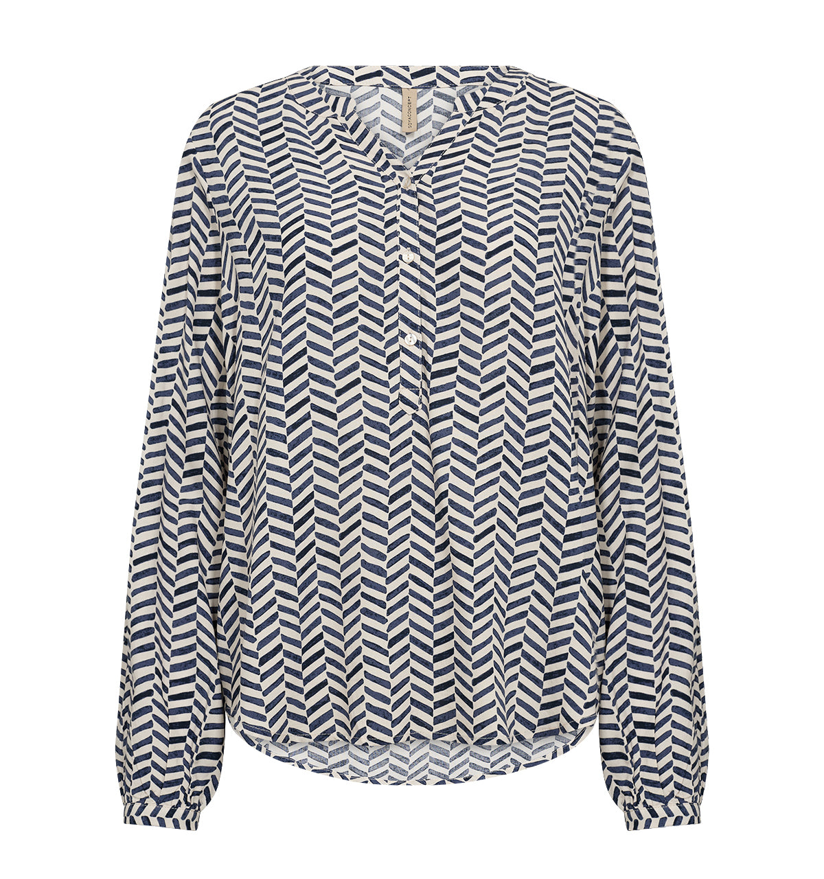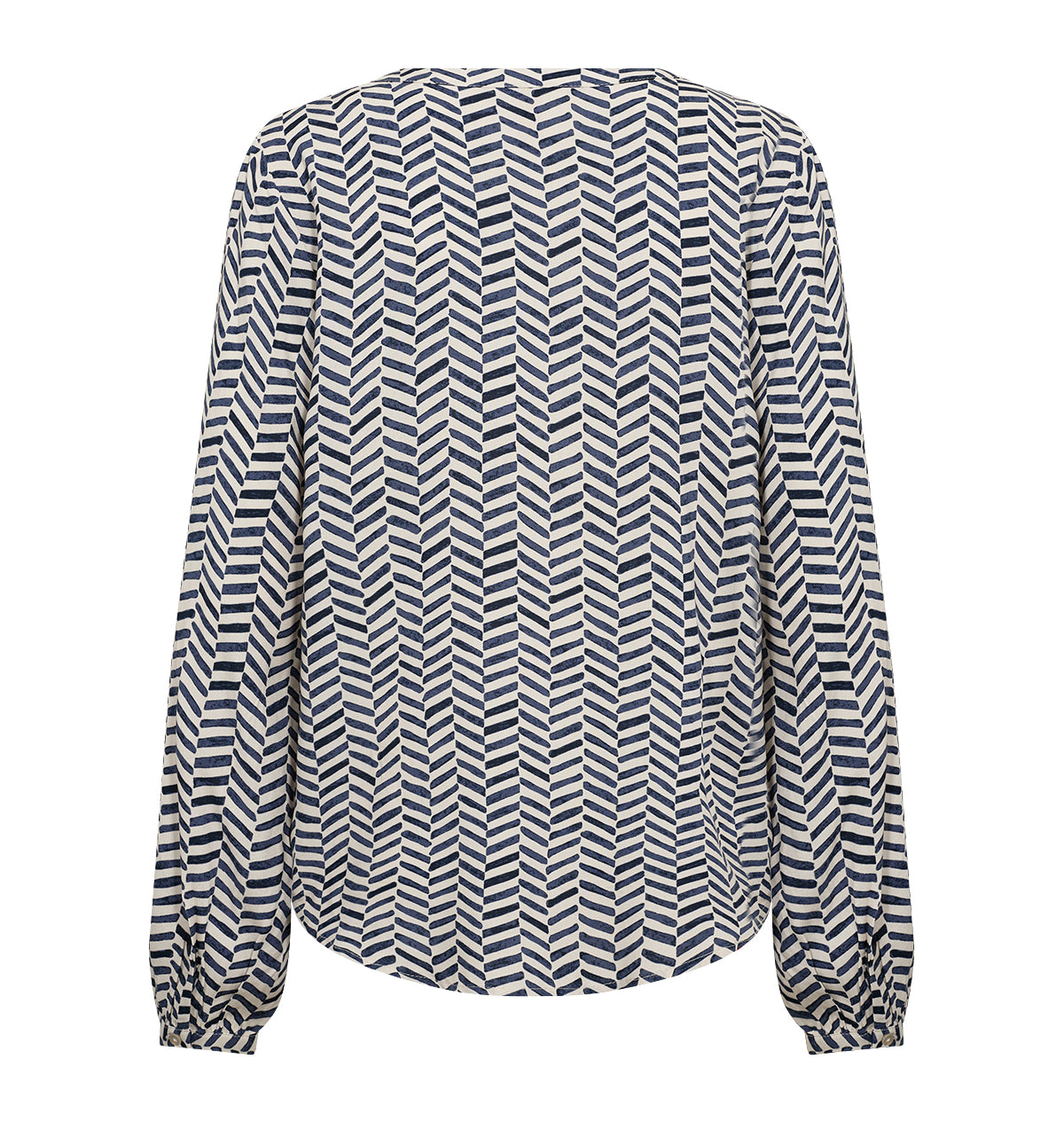 Crafted from 100% LENZING™ ECOVERO™ Viscose. It features a round neckline, button closure, and is adorned with a geometric print. Pair it with tailored trousers or denim for a smart look.