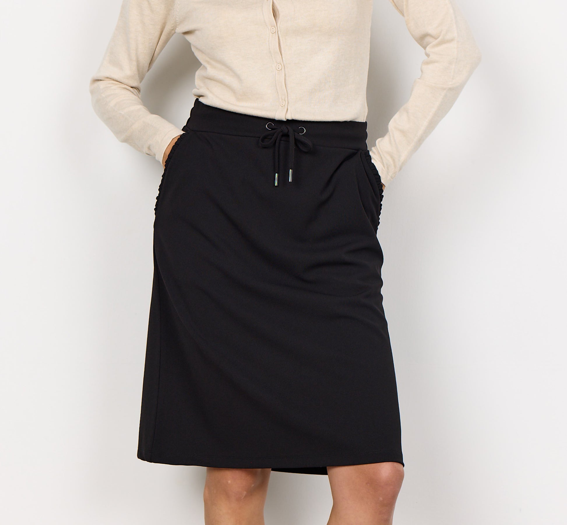 A stylish soft skirt made from 95% Recycled Polyester, 5% Elastane. This skirt features a comfortable drawstring waist, sidepocket with frilled details, and a smooth texture. Pair it with a fitted top and low-top sneakers for a relaxed, modern look.